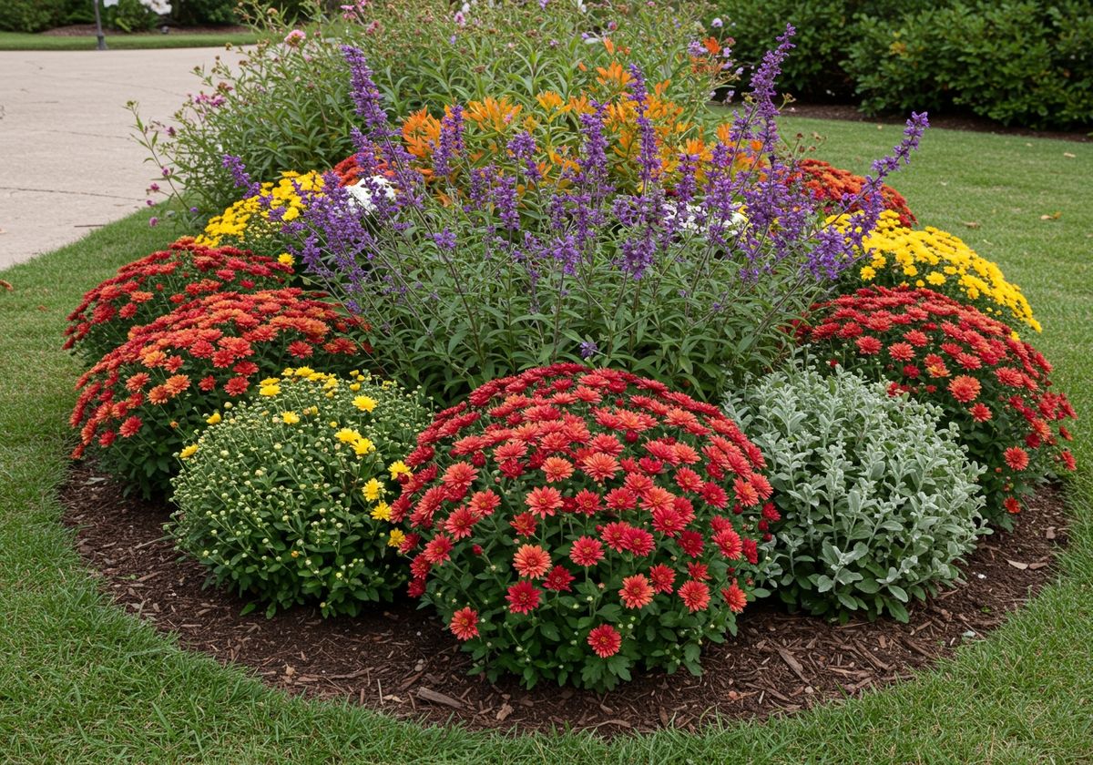 Incorporate classic fall colors with plants like mums, asters, and Mexican Bush Sage. These will provide vibrant pops of color that capture the essence of the season. Consider varying heights and textures to add depth and visual interest to your garden beds.