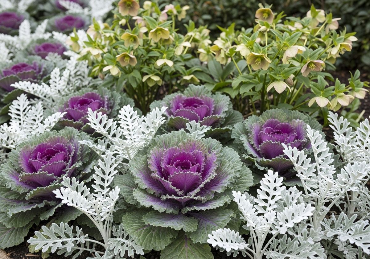 Dusty Miller: This silver-leaved plant provides a cool contrast to other winter colors and adds a soft, textural element to the garden.