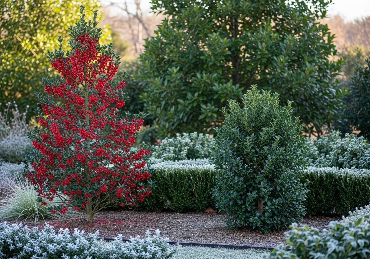 East Palatka Holly: This upright evergreen offers vibrant red berries that persist throughout the winter, providing food for birds and a festive touch to your landscape.